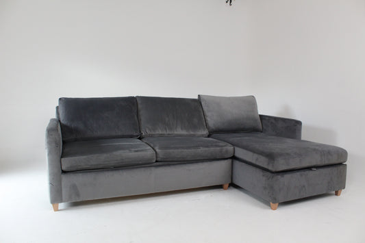 John Lewis Bailey II RHF Chaise End Sofa bed, Light Leg, Smooth Velvet Grey