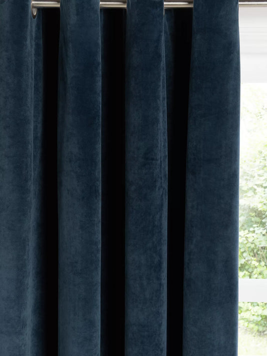 John Lewis Velvet Pair Lined Eyelet Curtains, Navy, W228 x Drop 228cm