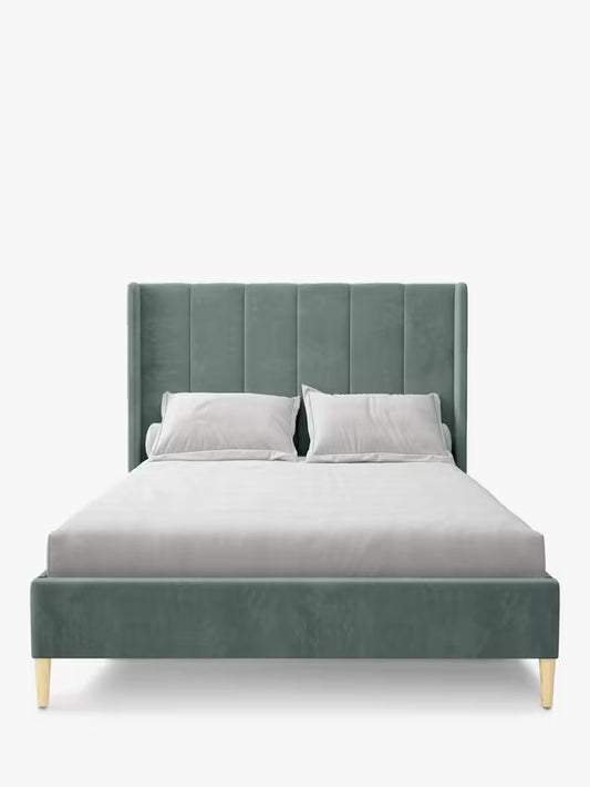 Koti HomeAdur Upholstered Bed Frame, King Size, Vintage Velvet Airforce