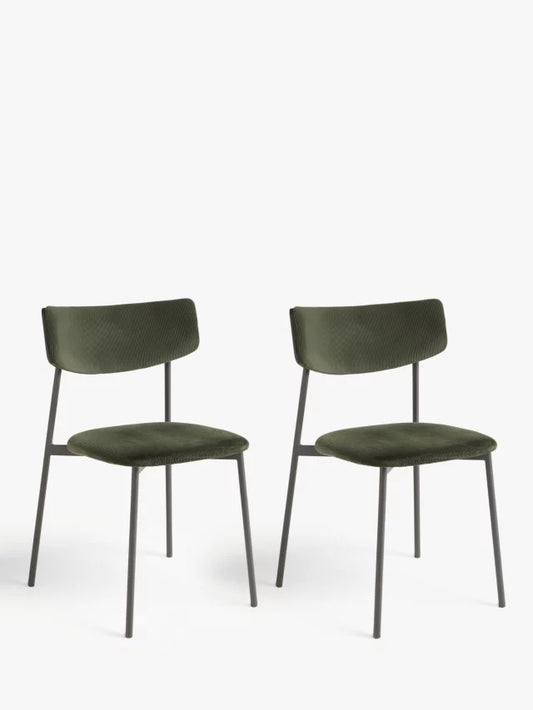 John Lewis ANYDAY Motion Corduroy Upholstered Dining Chairs, Set of 2, Green