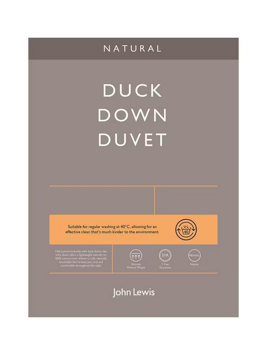 John Lewis Natural Duck Down 60/40 Duvet 3-in-1 Duvet, 13.5 Tog (4.5 + 9 Tog), White, Double, 200 x 200cm