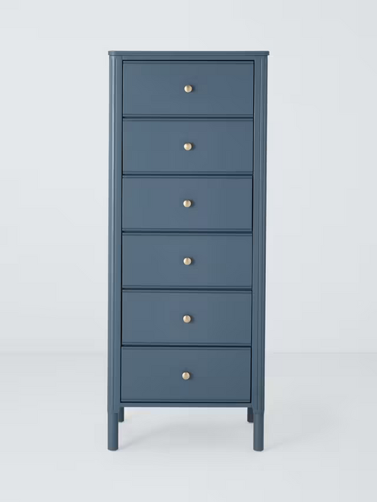 John Lewis Pillar 6 Drawer Tallboy Chest, Blue