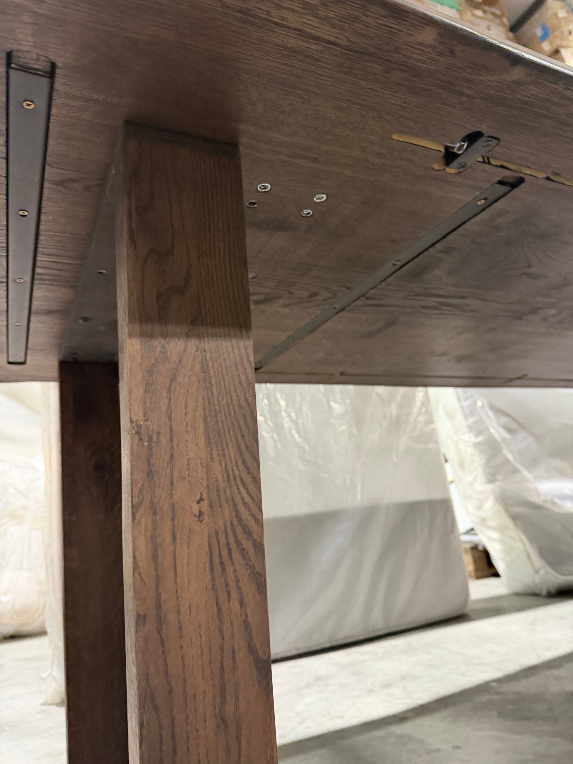 Grade B- – This dining table has some noticeable cosmetic imperfections, including damage to the edges and areas on the tabletop.