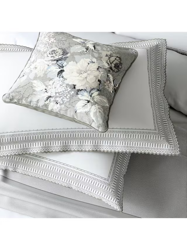 Add pure sophistication to your bedroom scheme with Astrid from Bedeck of Belfast. This bed linen is crafted from soft cotton percale, with a semi-plain design contrasted by intricate embroidery around the side and bottom edges.