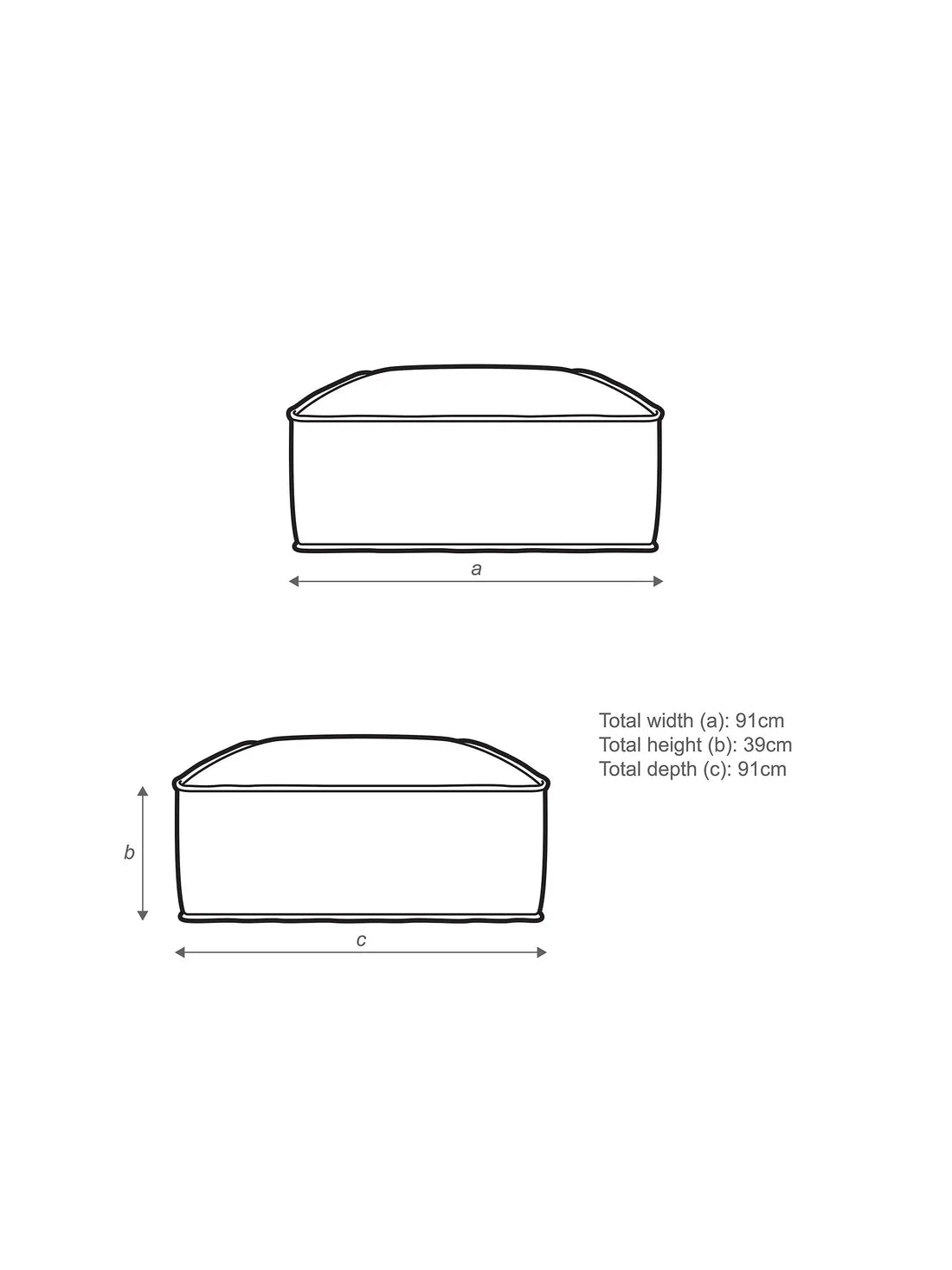 Dimensions - H39 x W91 x D91cm