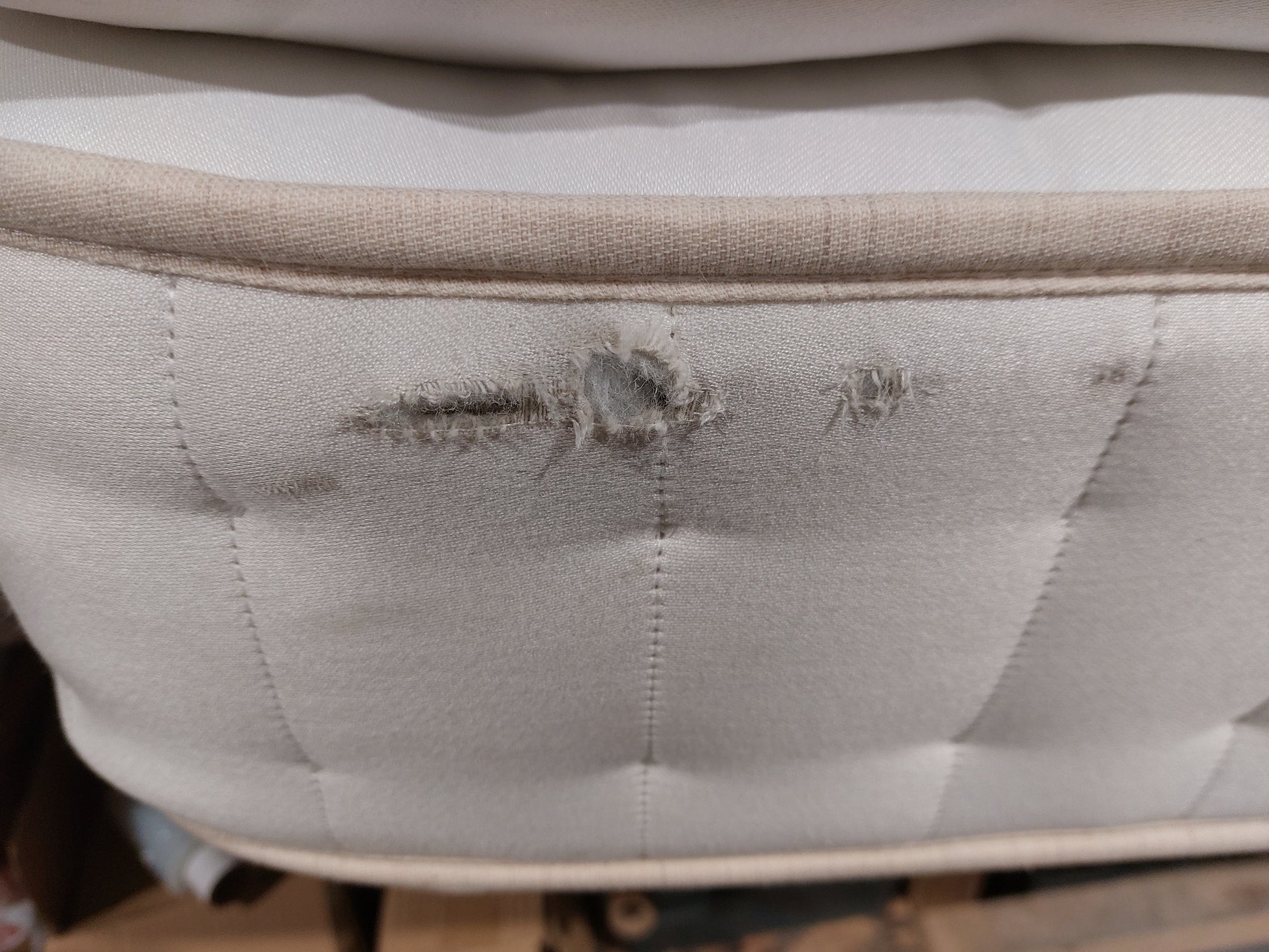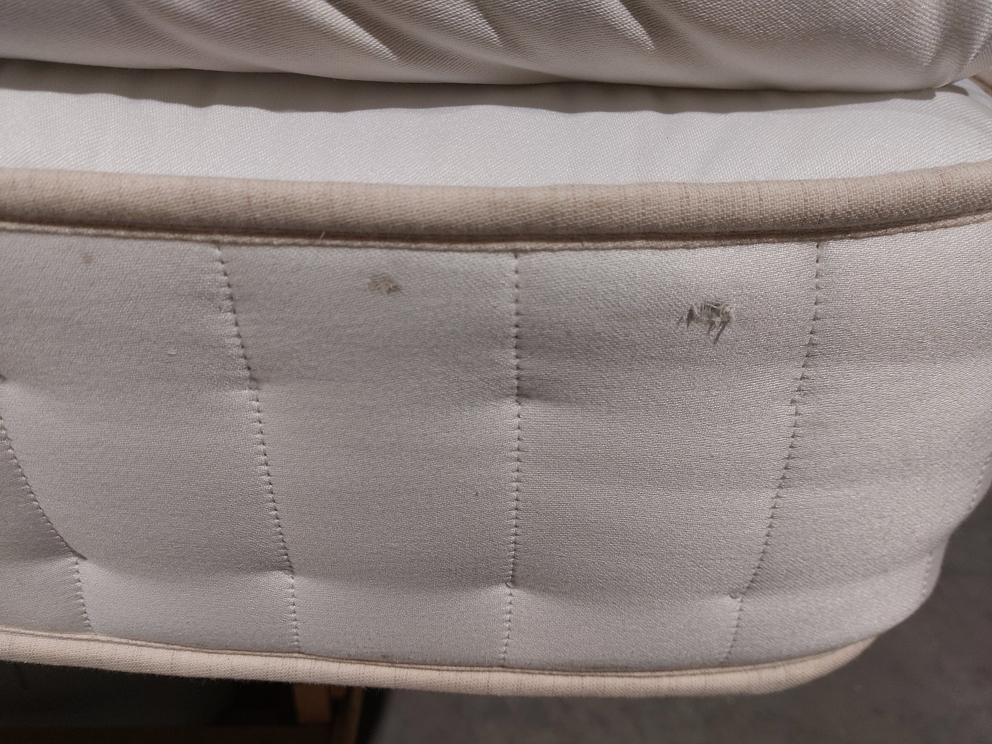 This item is in very good overall condition with minor cosmetic imperfections. There are small tears at both ends on one side, a few light dust marks on the top, and one tuft missing. These are purely cosmetic and are reflected in the price.The product pictures you see are true to life! We take care to highlight any visible damages, so you know exactly what to expect. Our goal is to ensure you're delighted with both the product and the price