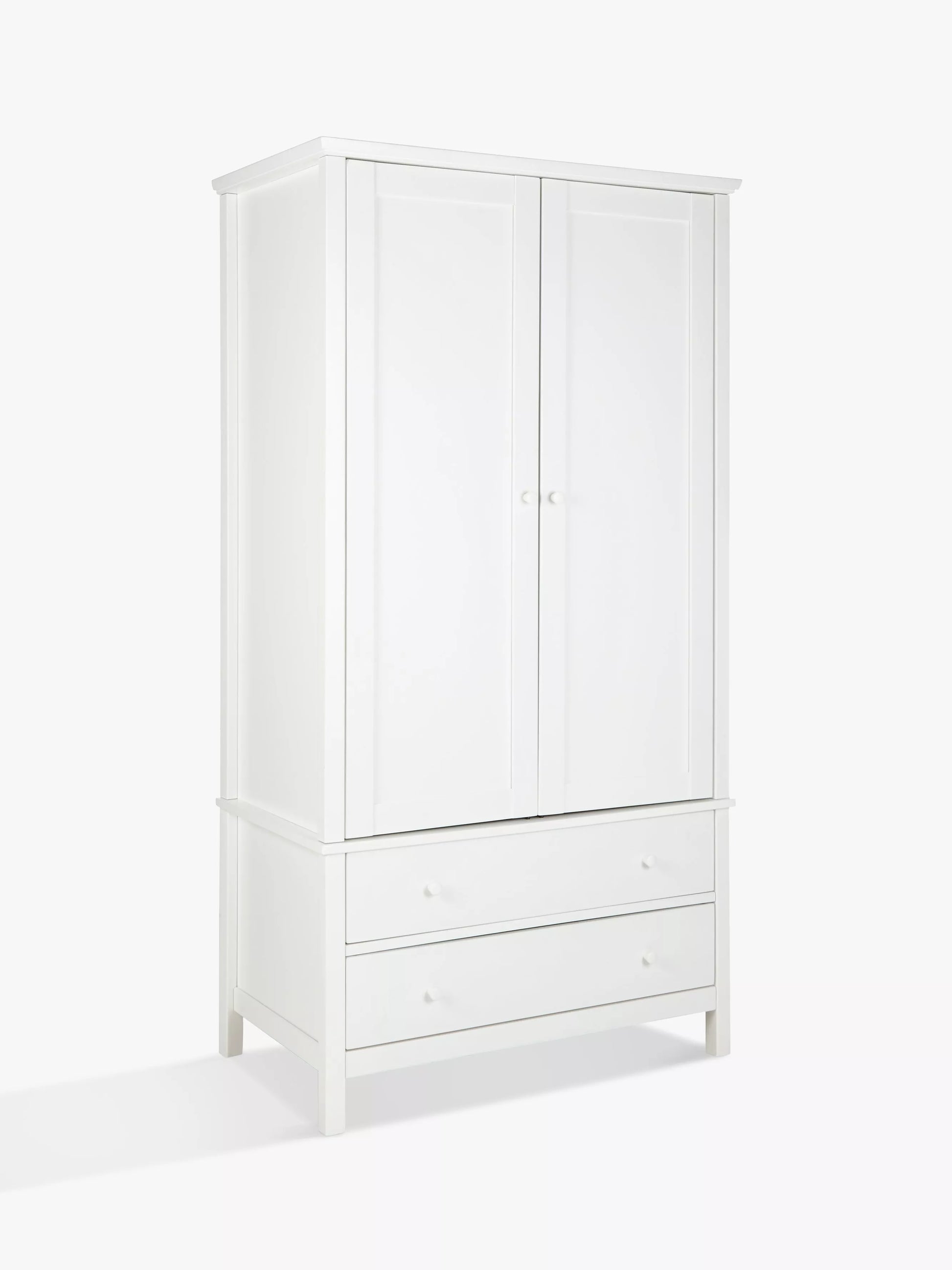 We've made this spacious double wardrobe from a mix of high-quality timbers. There's a metal hanging rail inside and two extra storage drawers beneath the main cupboard section. Well-proportioned for smaller bedrooms, it's available in a choice of natural, or painted finishes.