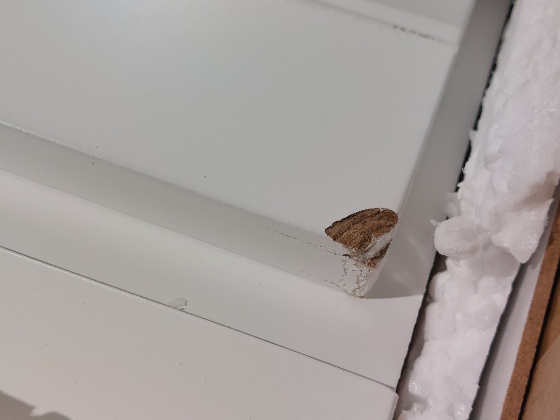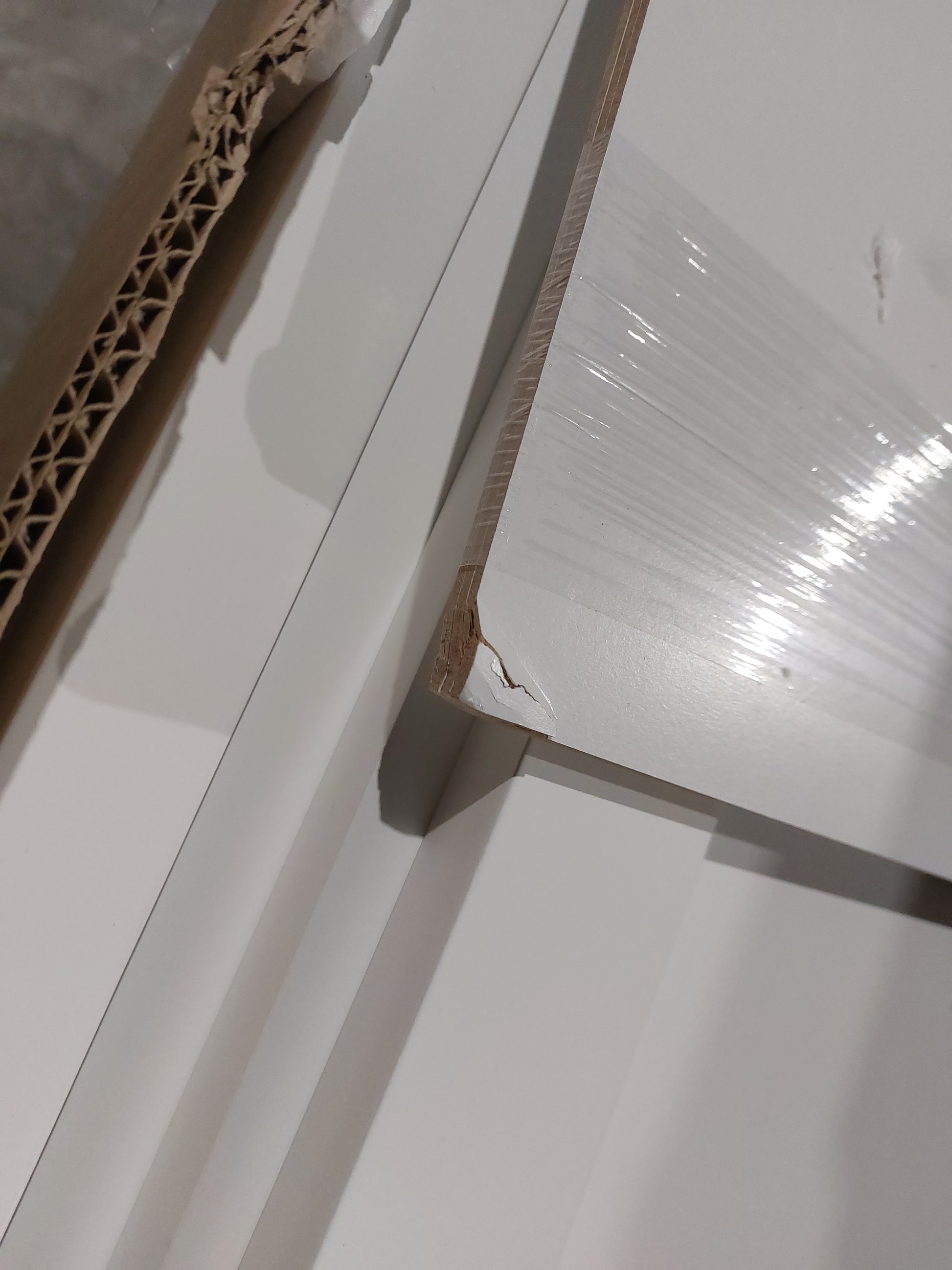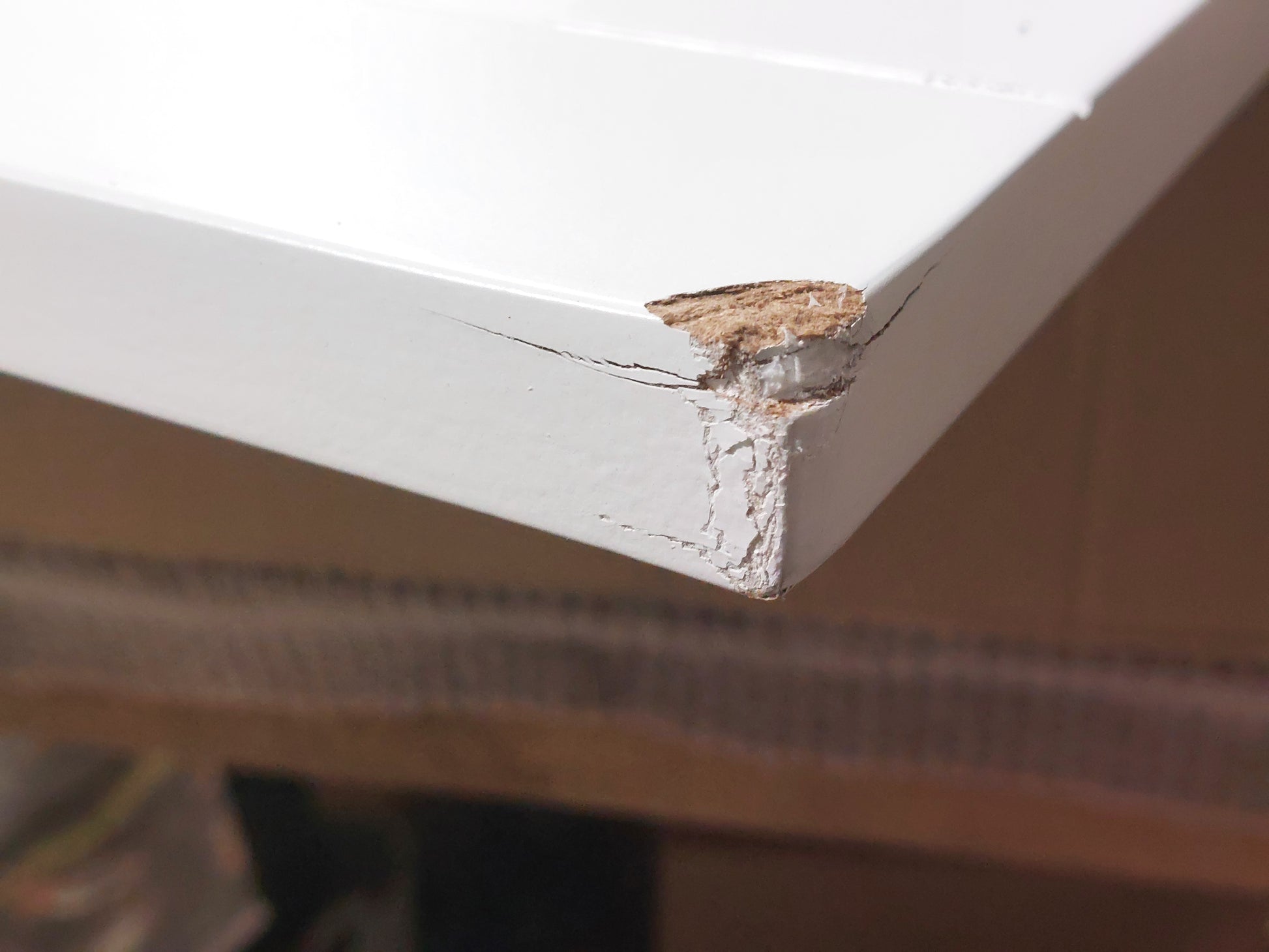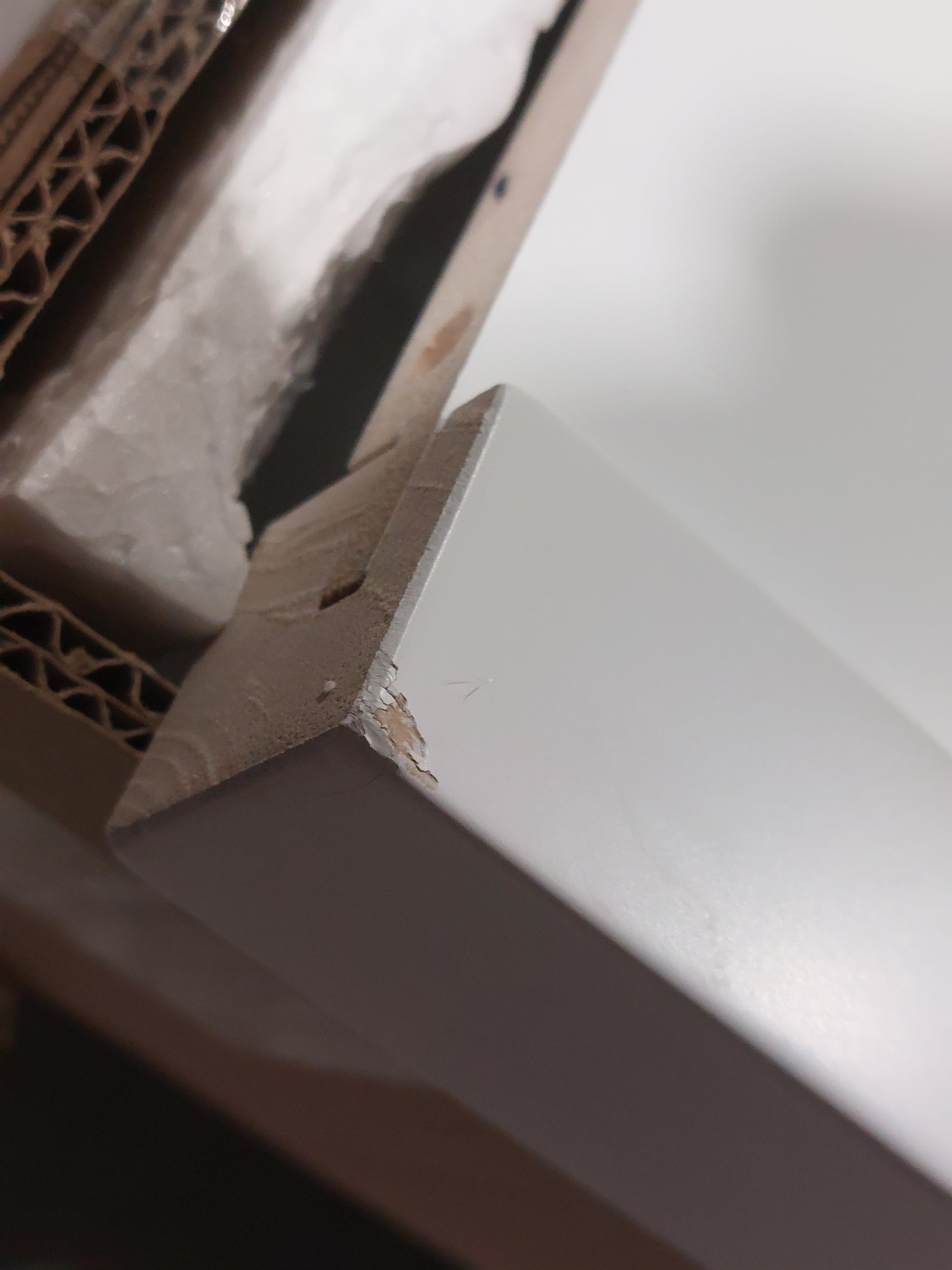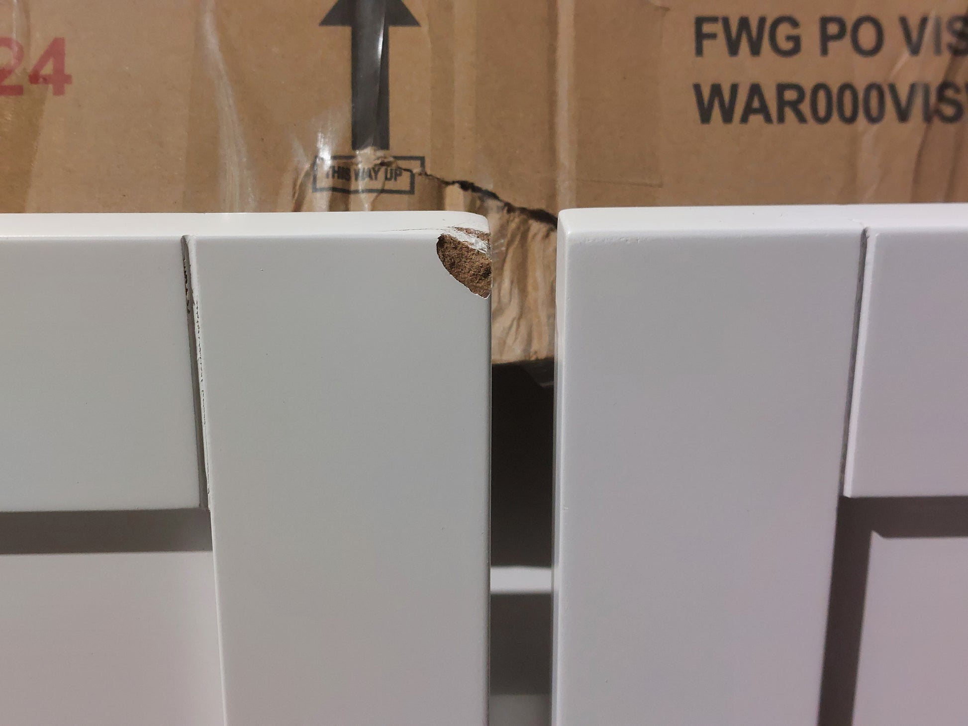 Grade B – The back panels each have one damaged corner. One door has damage to a corner, and the other shows a minor crack in the paint on the inside.