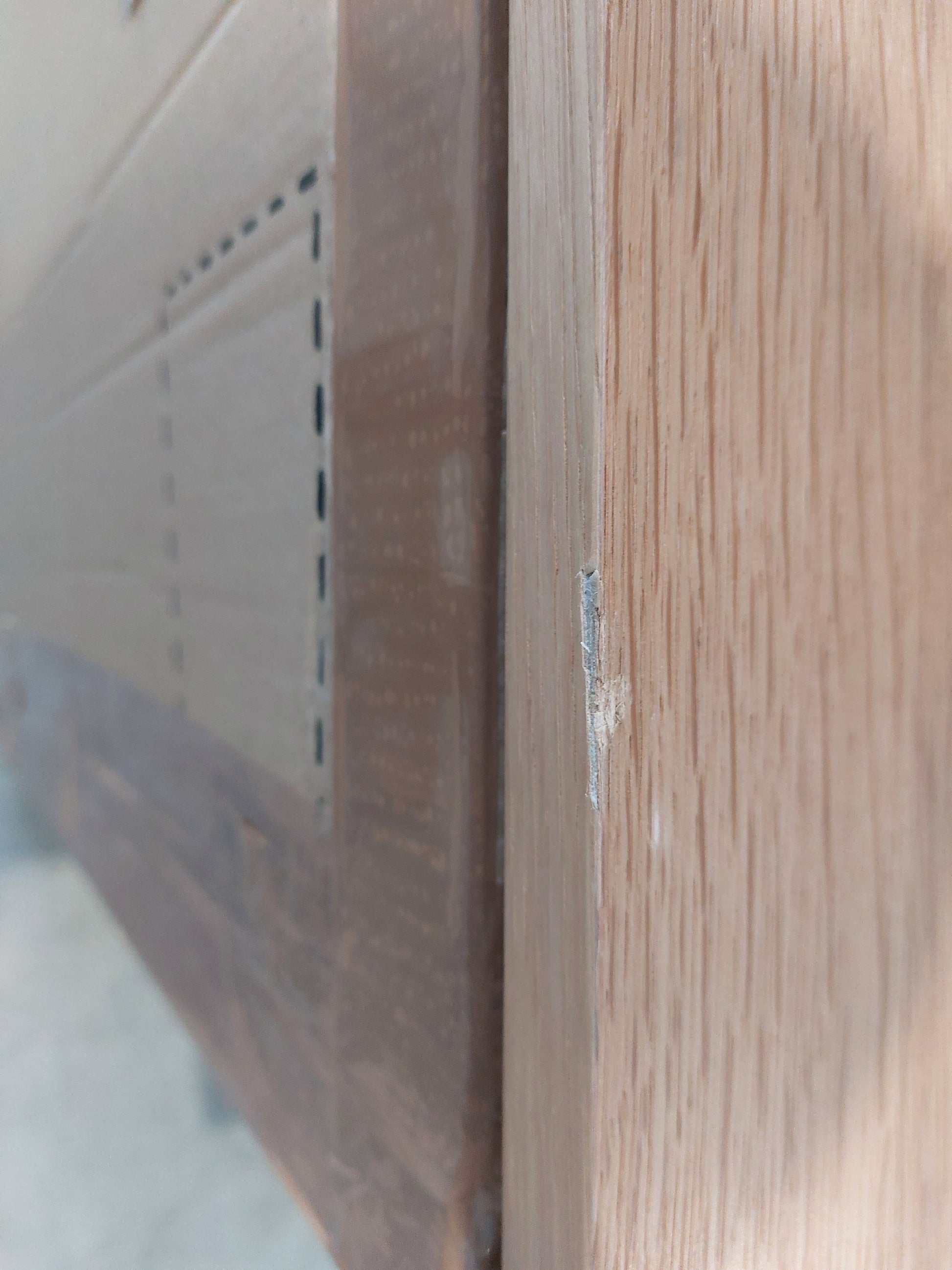 Grade B – A few small dents and scuffs around the edges of the shelf, along with a minor mark on the front of the left drawer.