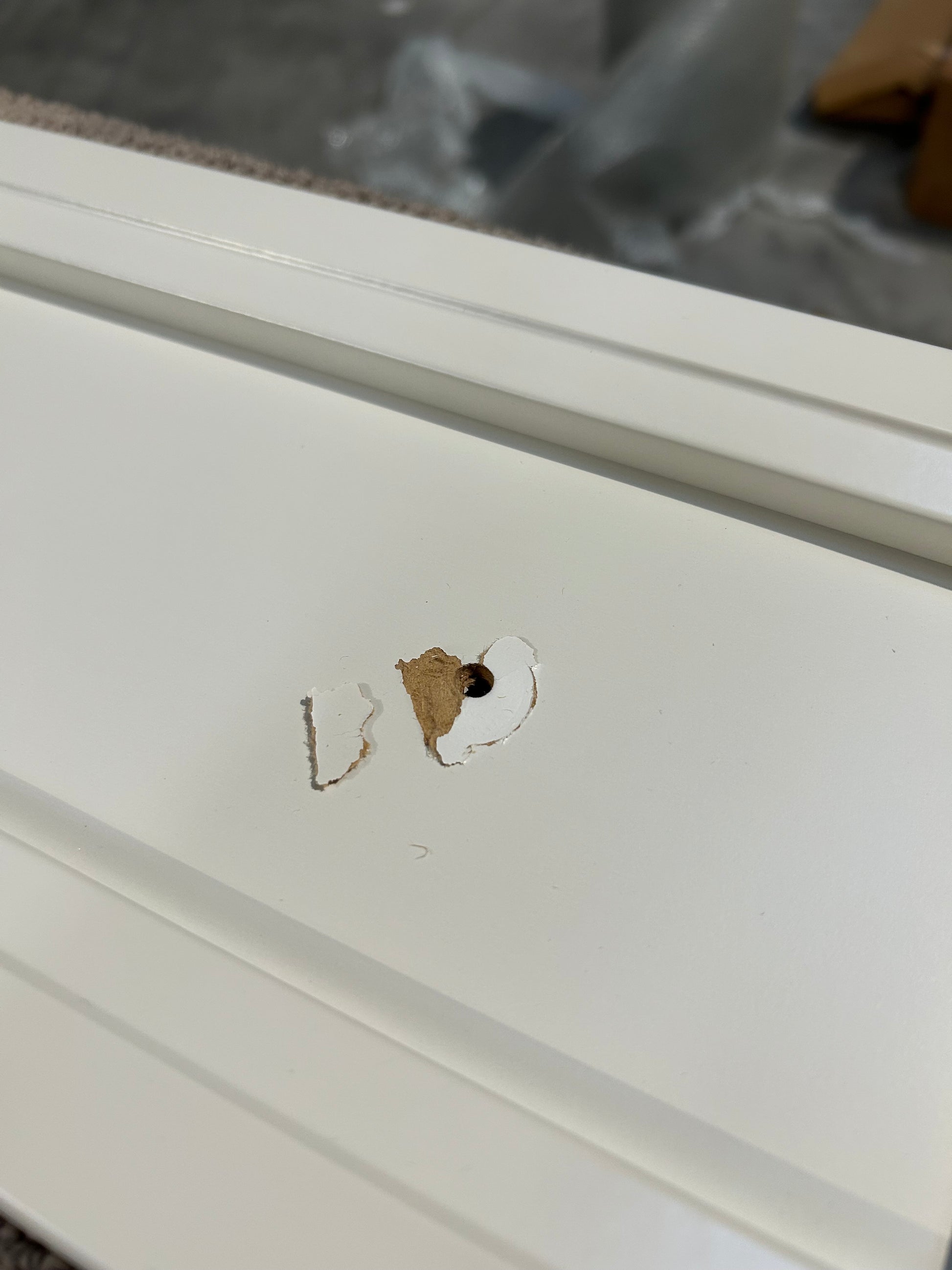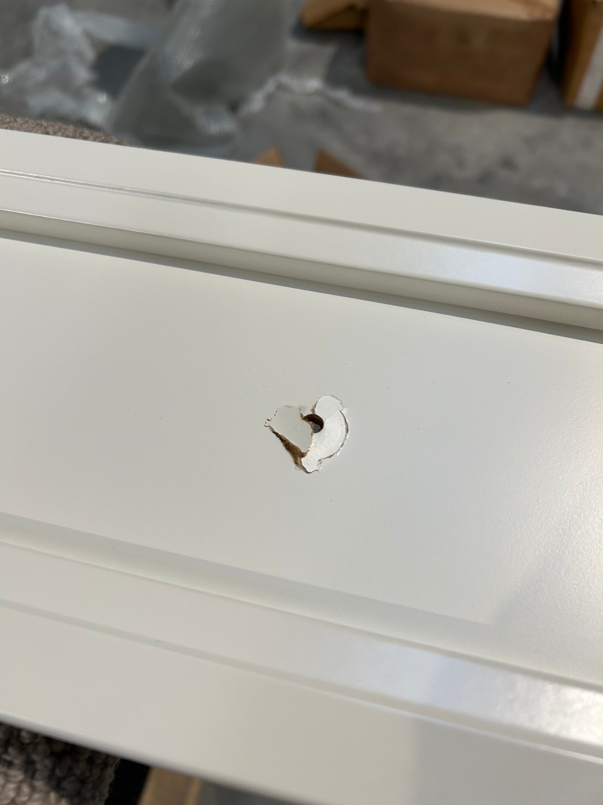 Grade A - Open Box - Damage to one drawer but once the drawer knob has been added it reduces visible damage, various scuffs.