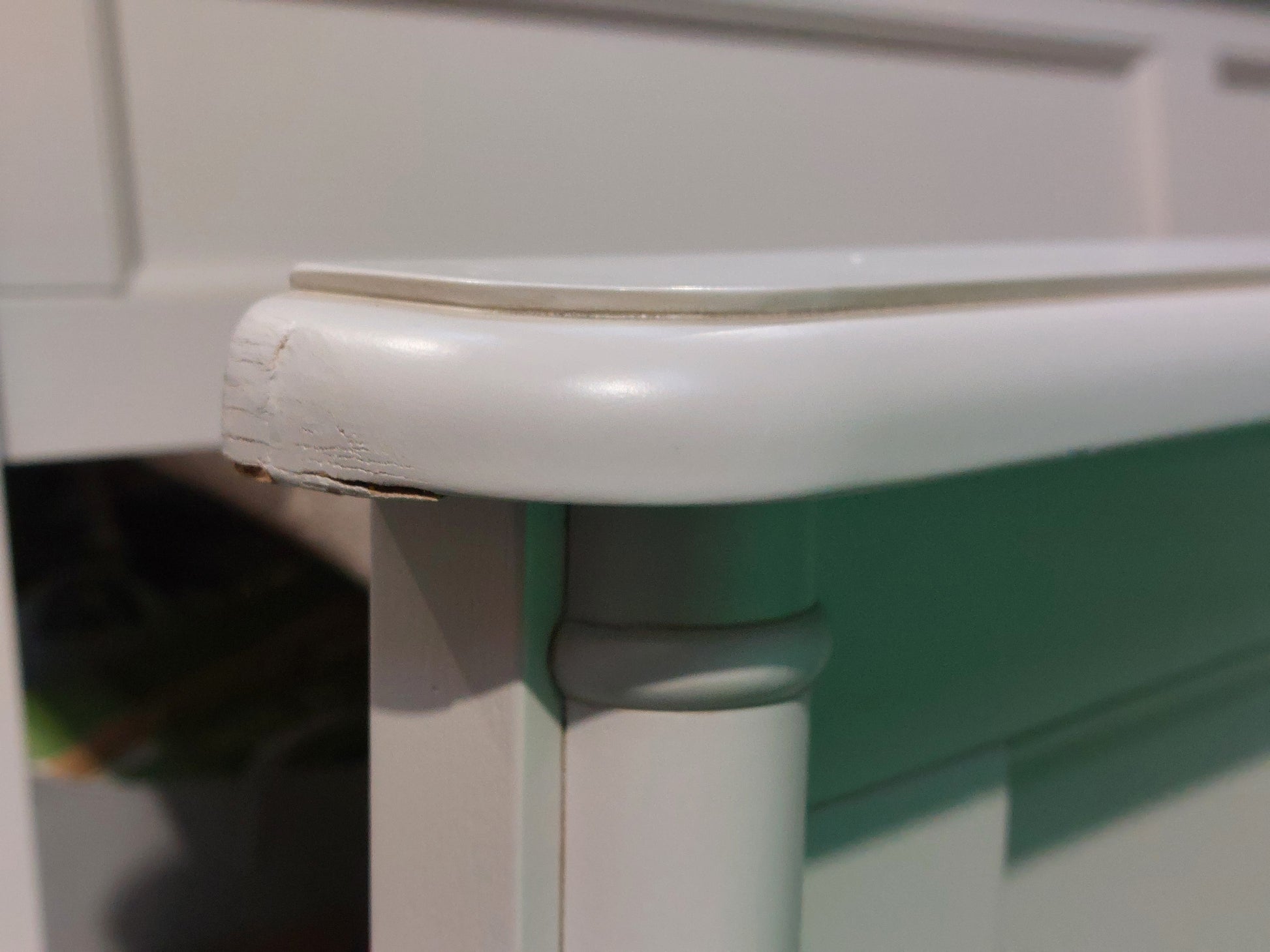 The rear corner of the headboard is damaged. There is also a light mark on the front panel. Cosmetic wear is present consistent with Grade B grading and does not affect overall use.