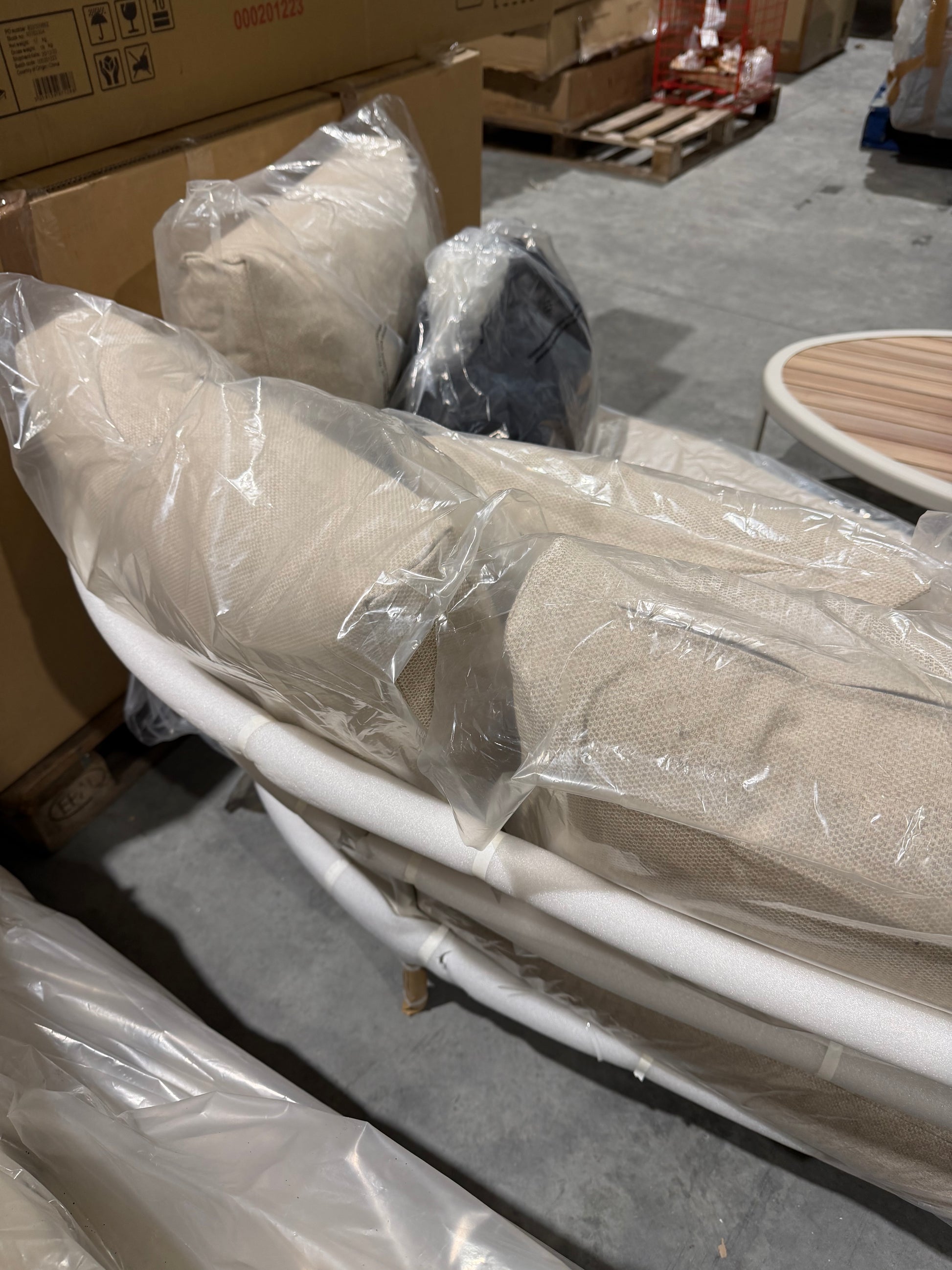 - Shower-resistant seat and backrest cushions plus four scatter cushions