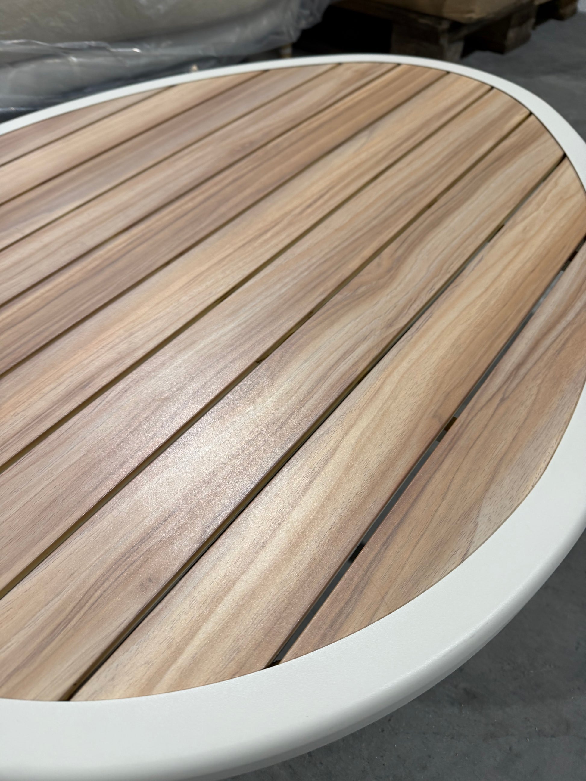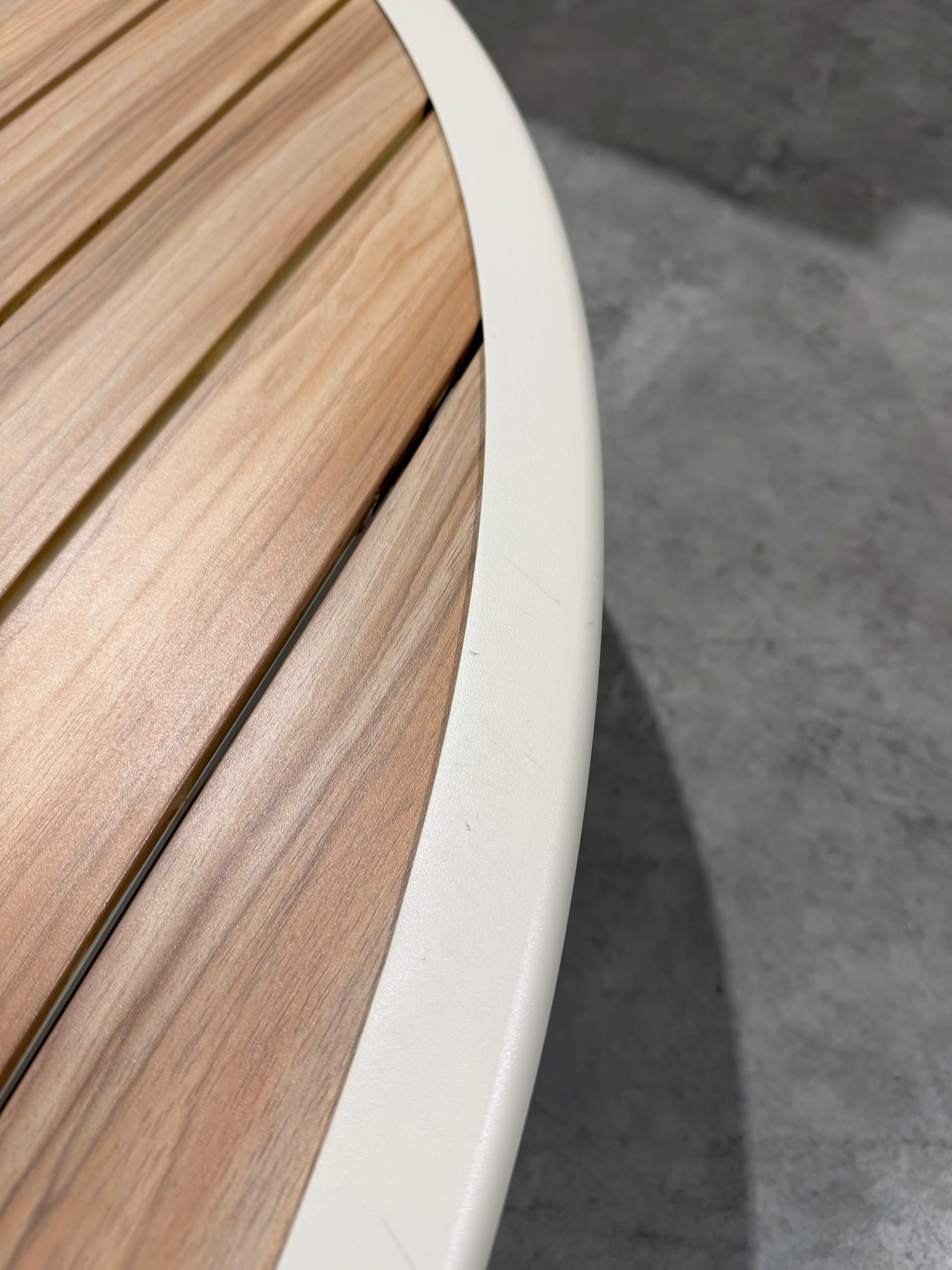 Bringing Los Angeles-style vibes to your outdoor space, our Lozenge garden furniture is a modular design with a curved look and stylish wood-effect details. The exposed frames are made of lightweight yet robust and rust-proof powder-coated aluminium.