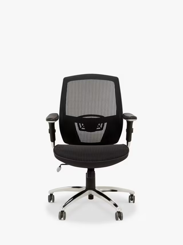 This ergonomic office chair is designed with a form-comforting mesh backrest, which offers perfect lumbar support without external devices or manual adjustments. The swivel seat is height adjustable to suit each user and the metal base in a polished finish makes it a smart option for your work environment.