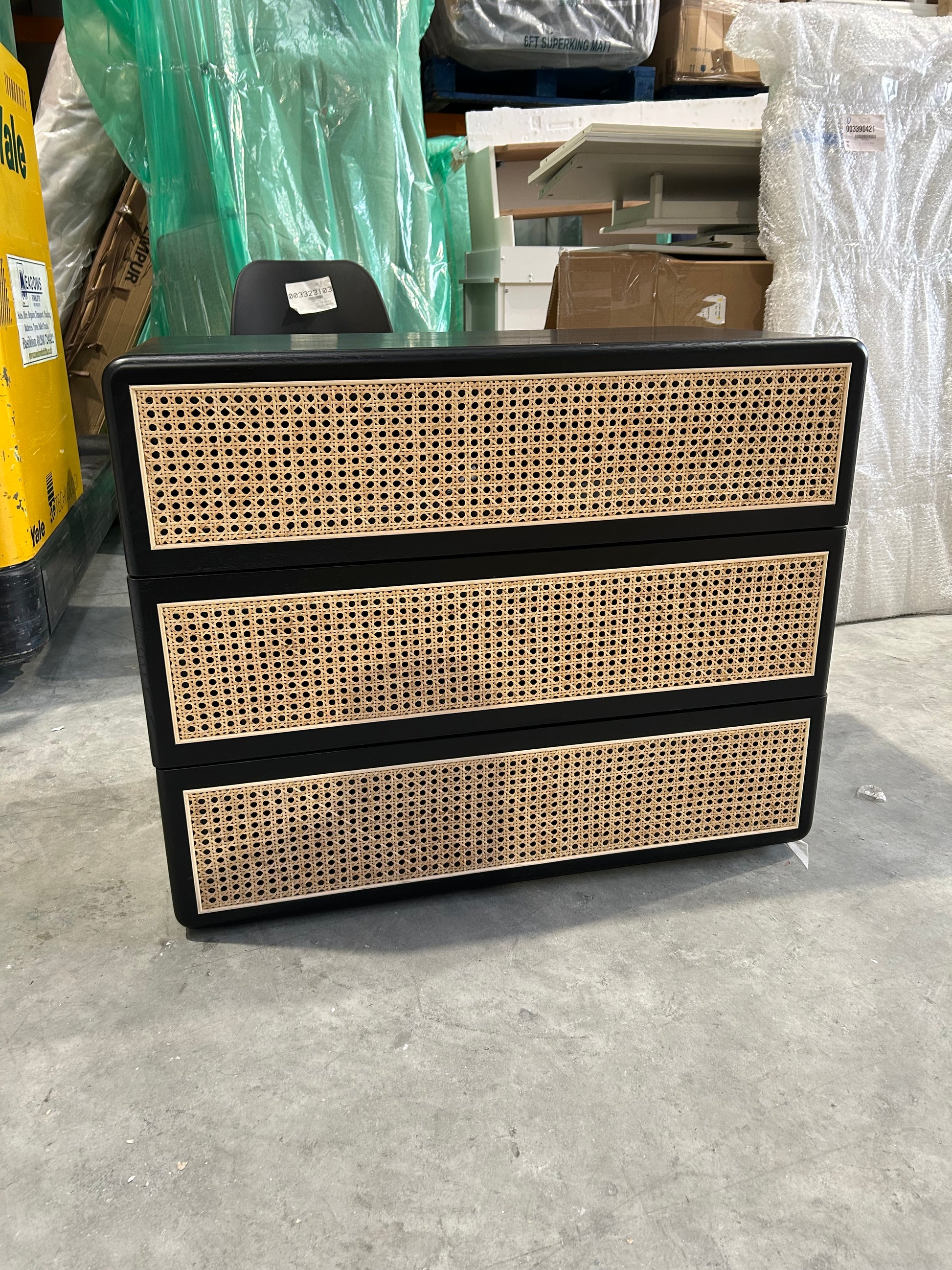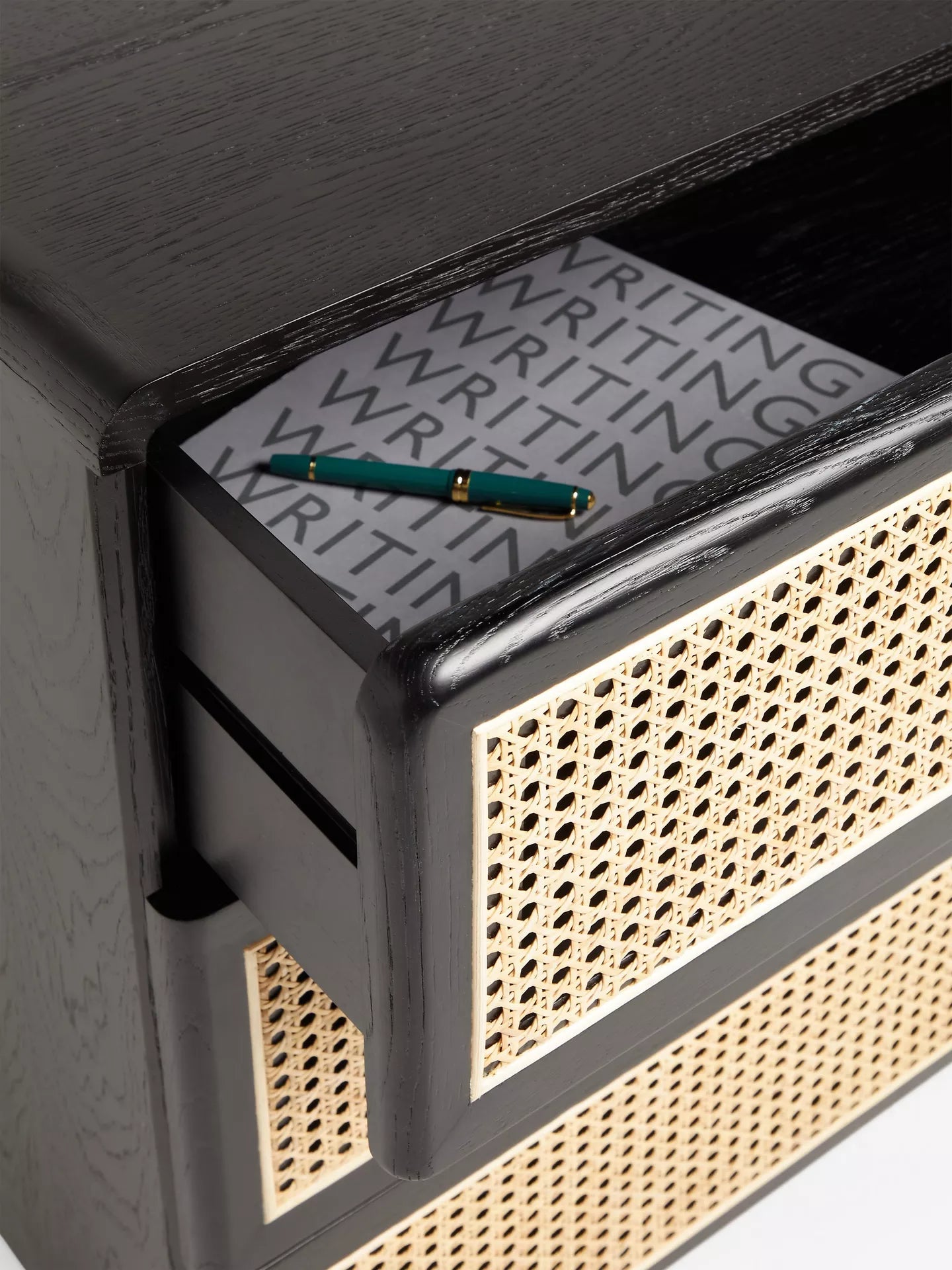 So rattan is having a little revival and we're here for it. See how it breaks up the design and gives the drawers a fresh finish, not to mention the contrast it creates against the solid oak frame. We've made this chest from a combination of solid oak and MDF so it's built-to-last and its rounded edges and gently curved legs give it a softer shape. And with three spacious drawers, we don't think you'll struggle with storage space.