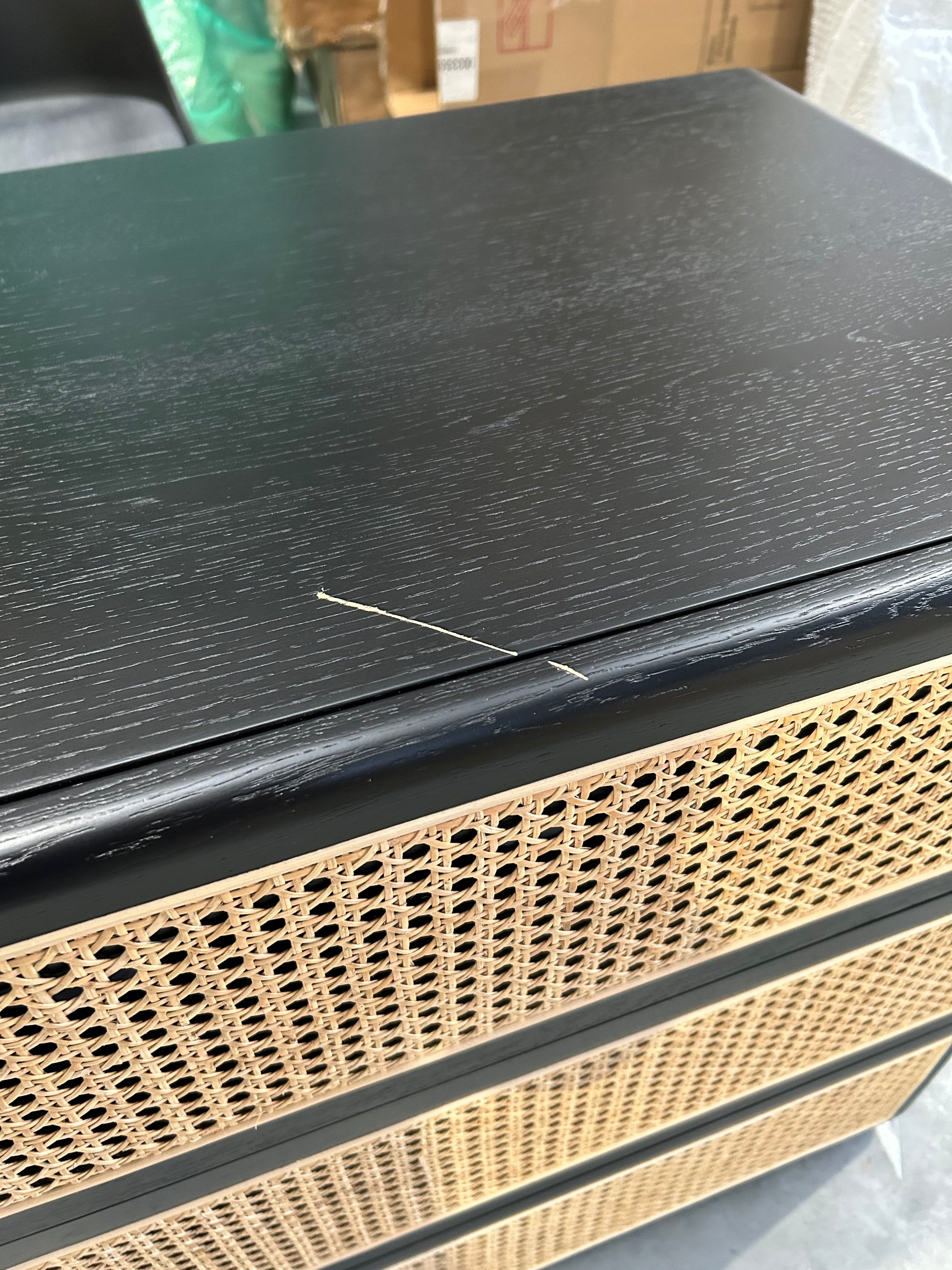 Grade C - Imperfections: The furniture is Ex Display and has imperfections or cosmetic marks and scratches to the top, the original feet are not included.