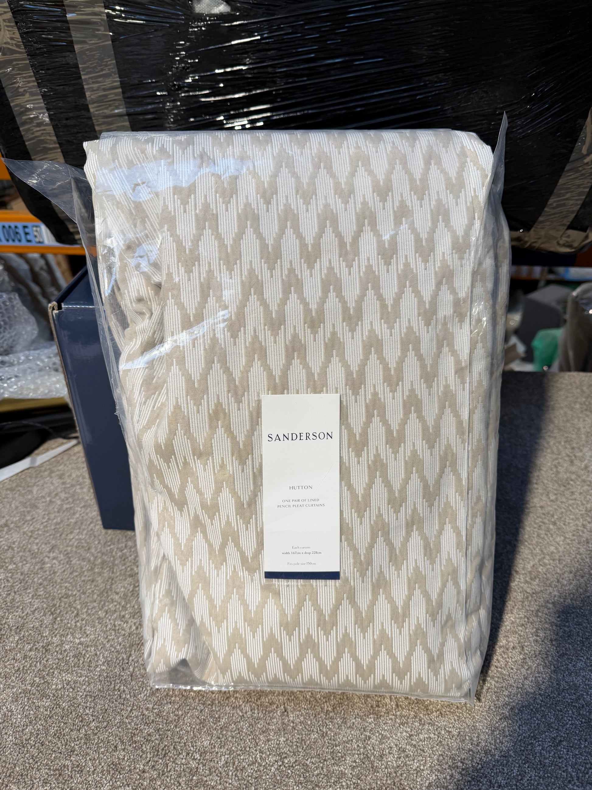 Sanderson Hutton Pair Lined Pencil Pleat Curtains, Linen, W162 x Drop 228cm