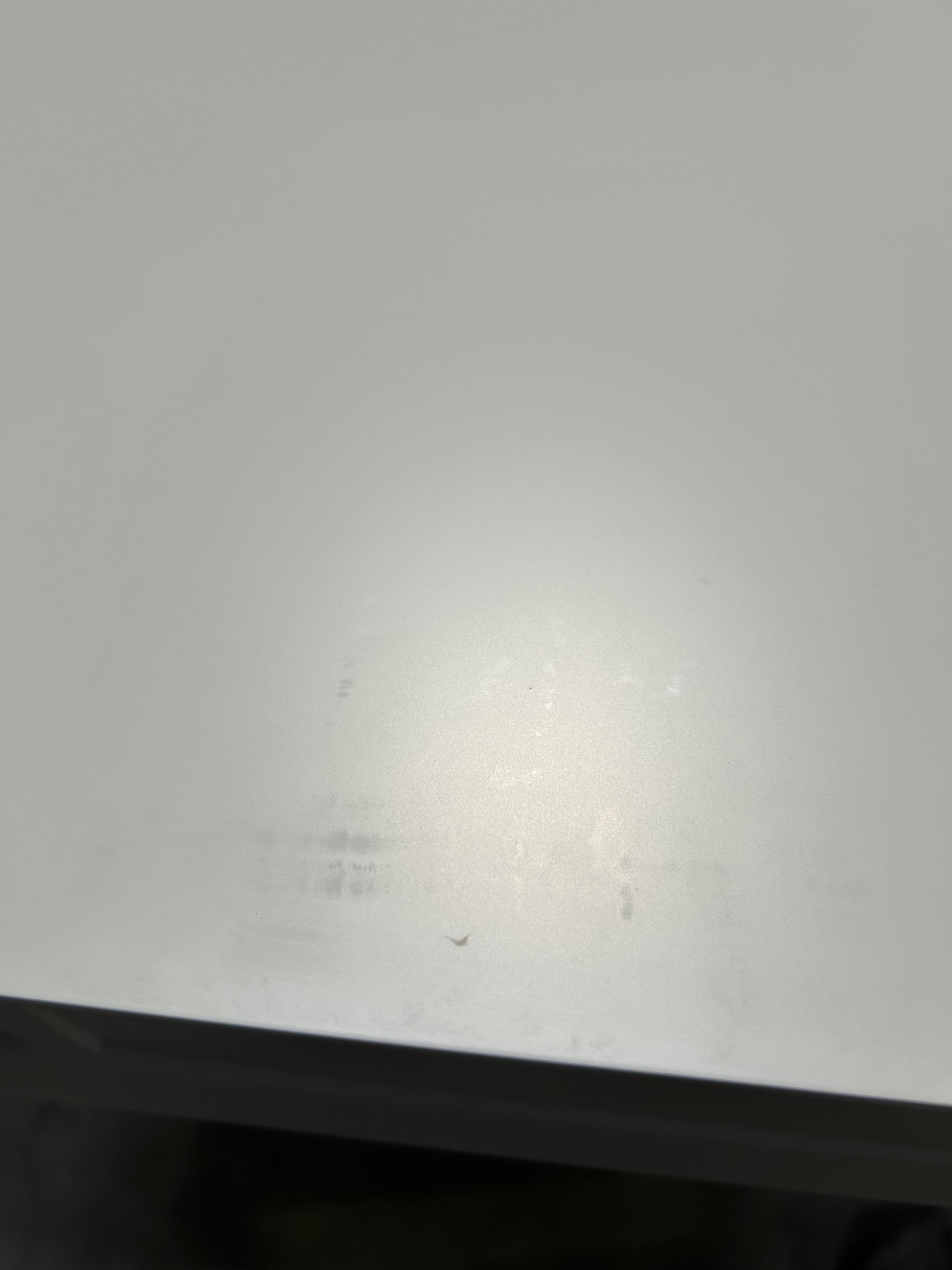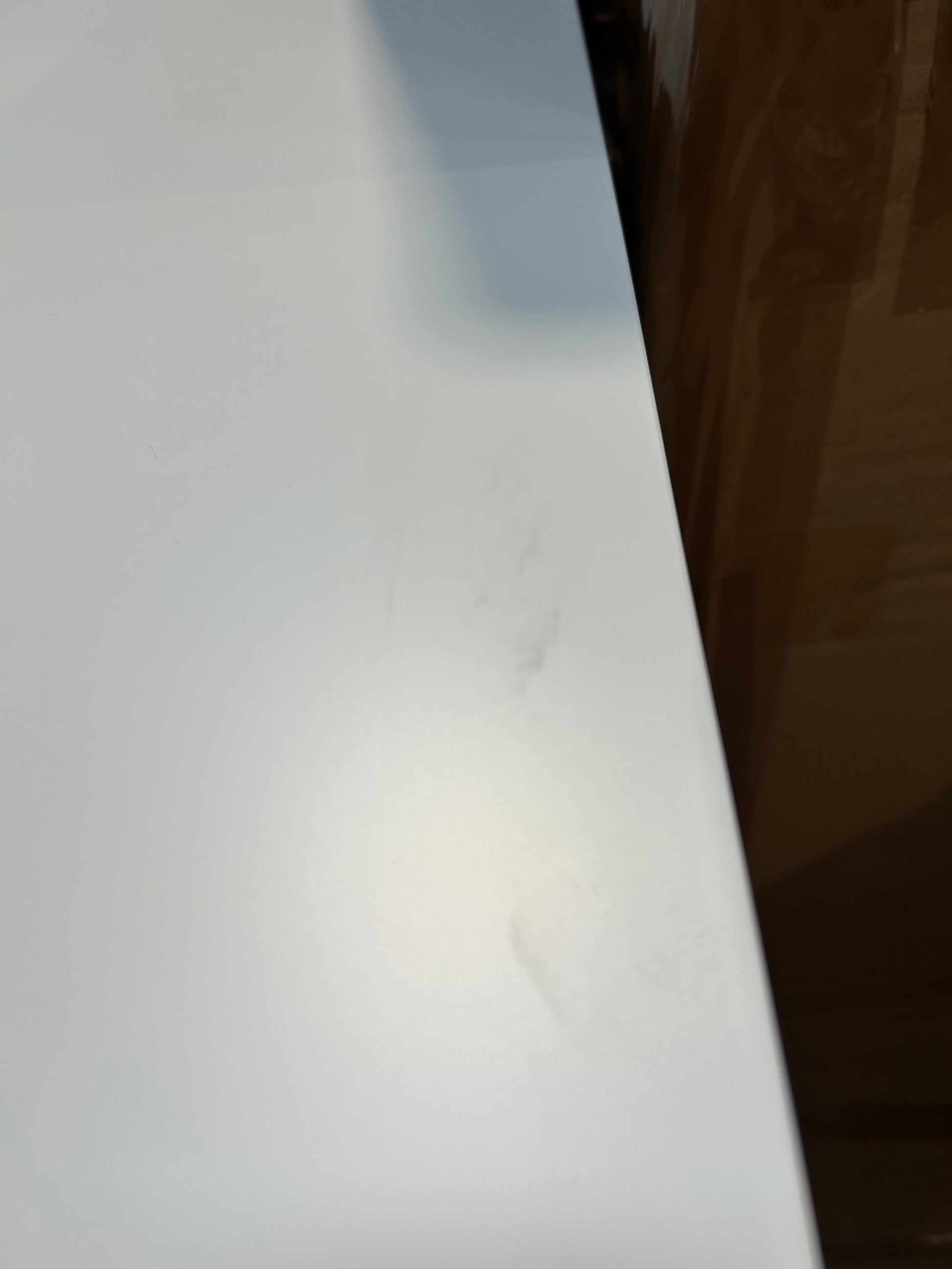 Grade B - Minor Imperfections: The furniture is brand new but shows feint pressure marks from storage to the top of the desk.