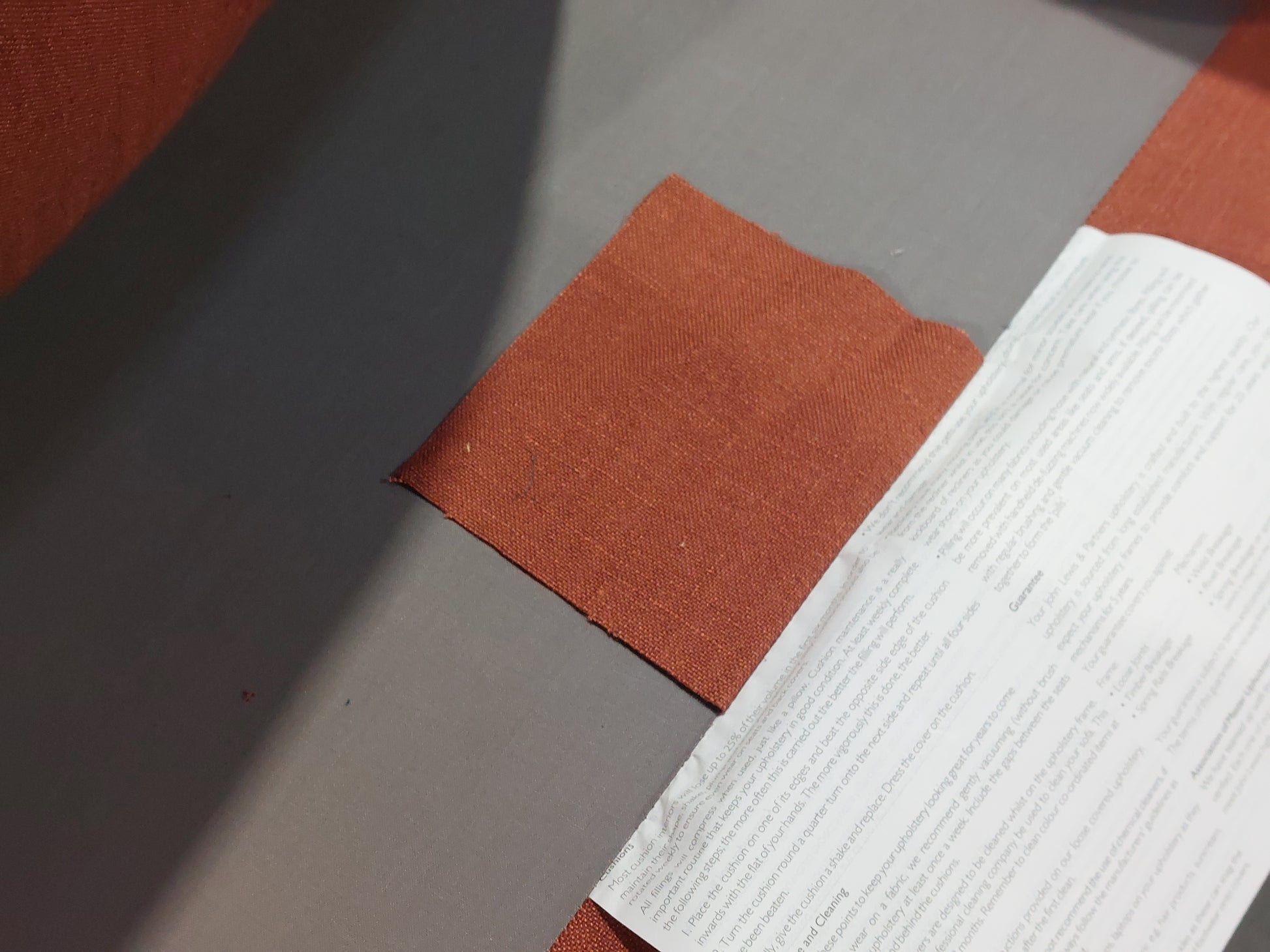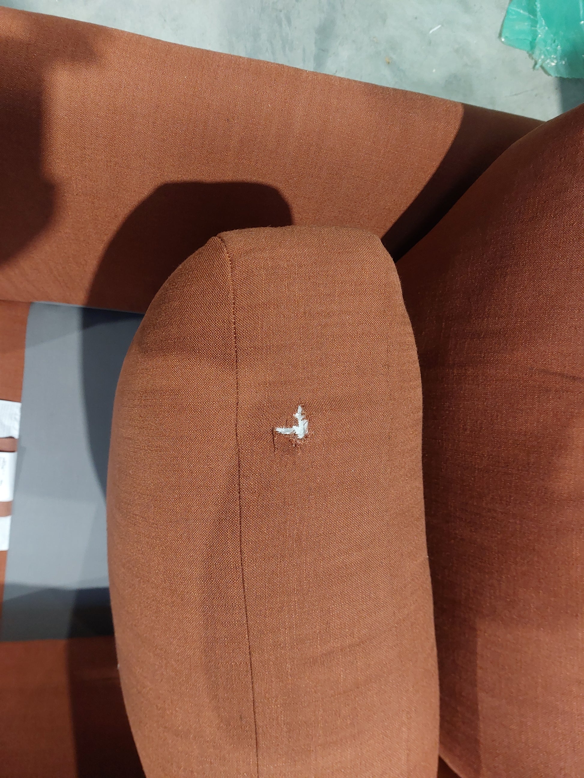 Grade B – Brand New - Small hole in front of seat cushion, there is a swatch of fabric attached