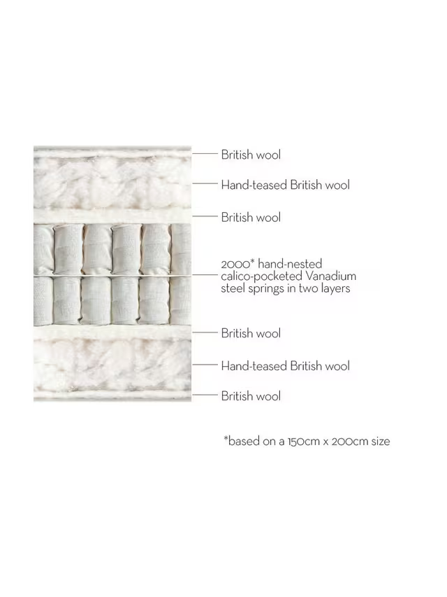 The Chelsea mattress provides the unique experience of an all-wool bed. The wool filling offers natural temperature regulation and the unique springiness from the fibres gives the mattress a softness with a satisfyingly supportive feel.