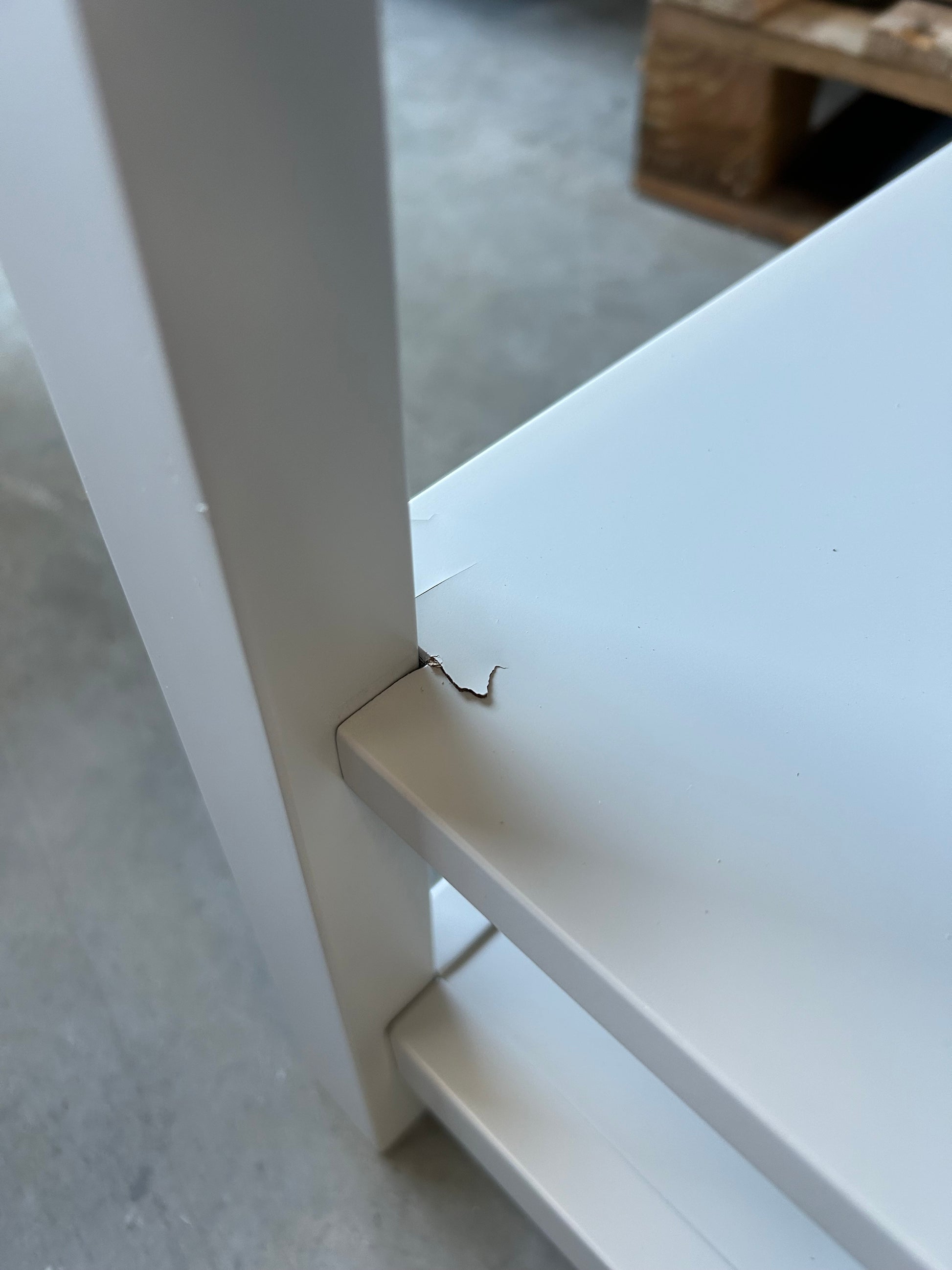 Grade B - Minor Imperfections: The furniture is brand new but may have minor imperfections or cosmetic issues as pictured. middle shelf damage at one end, two corners damaged at same end PBF